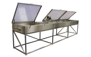 Test chambers are available to protect personnel during proof or burst testing. A few samples are pictured below. Chambers are manufactured in polished stainless steel with a clear polycarbonate door(s) for visibility during testing. Fluid port(s) are provided inside the enclosure, while all controls remain outside the enclosure for operator safety. In a hurry? Choose from our selection of Quick Ship Test Systems. basic units can ship within 24 hours or less and chamber systems within 2-3 days. we normally stock test chambers with nominal working area dimensions of either 24" wide x 24" deep x 15" high, 36" x 36" x 15", 48" x 24" x 15" or 72" x 24" x 12" with the door opening from the top. specify individual parameters at our customization page. Need a different size or configuration? No problem, simply specify dimensions and features that more accurately meet your particular requirements and we will be pleased to accommodate you. To customize a system to fit your particular application, please visit our customization page or give us a call at (916) 645-3317.